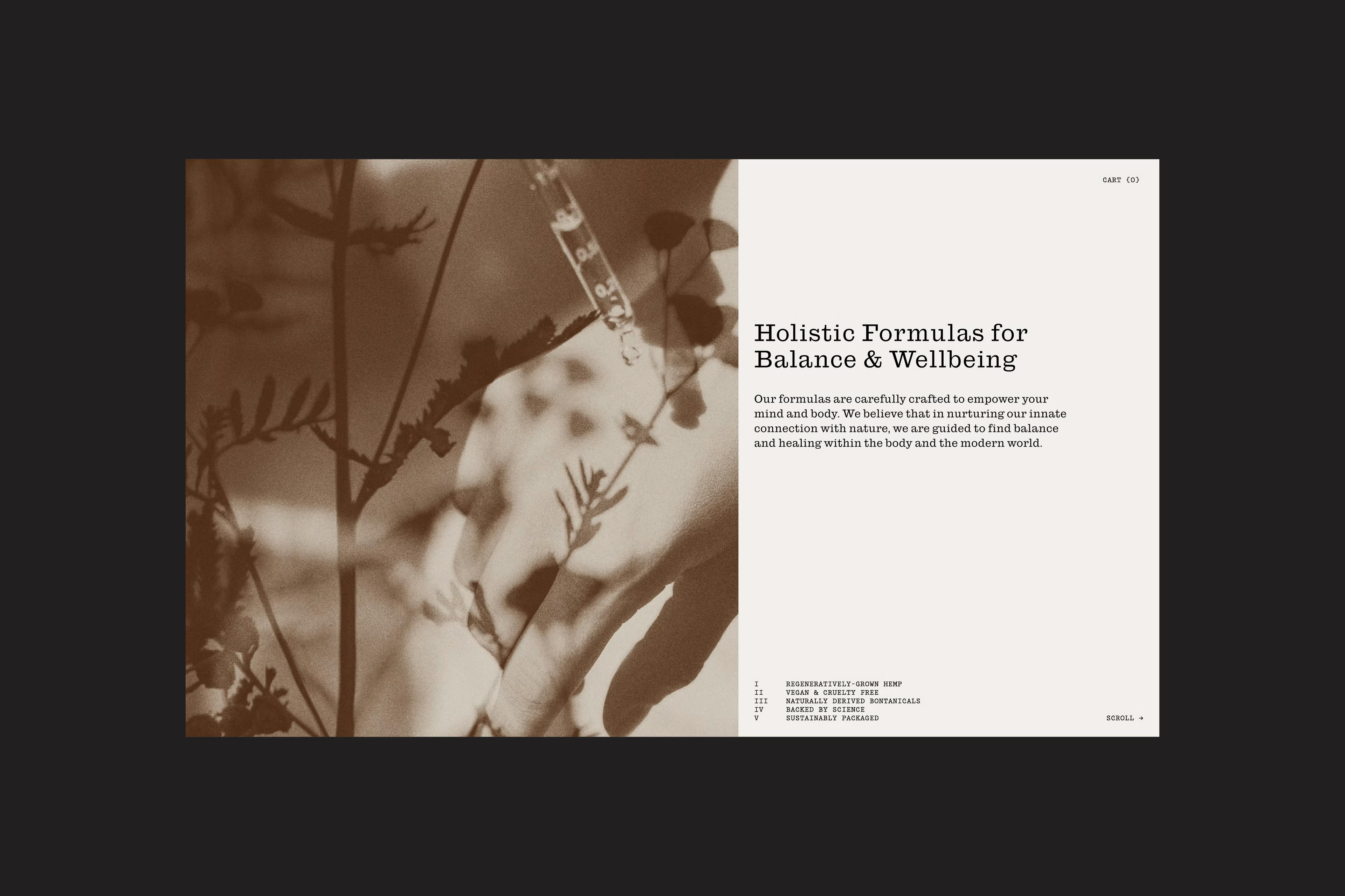 Working closely to review each touchpoint, we helped craft a new brand name to strengthen their market appeal, alongside a refreshed brand identity, product packaging and online presence. We crafted a brand language built around harmony and tranquillity, rephrasing their offering as ‘Remedies Rooted in Nature’, balanced by a calm visual aesthetic. The brand logotype is accompanied by an elegant mark, used sparingly and applied to sustainably sourced FSC paper stocks as a blind emboss. The packaging uses all eco-friendly inks and recycled materials, an approach that ensures the brand’s commitment and respect for our planet.